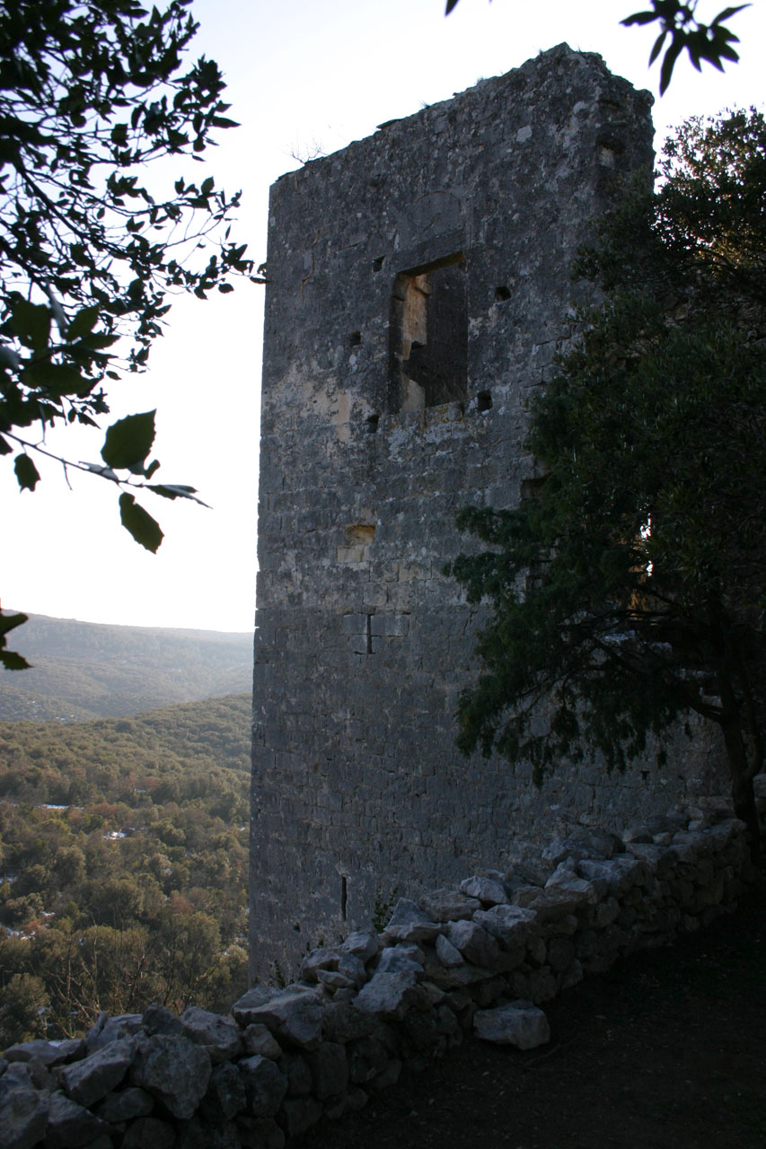 La tour en surplomb de la falaise comporte plusieurs ouvertures intéressantes, l'une a vu ses pierres pillées ce qui menace aujourd'hui la stabilité du mur, par contre les autres sont parfaitement conservées.