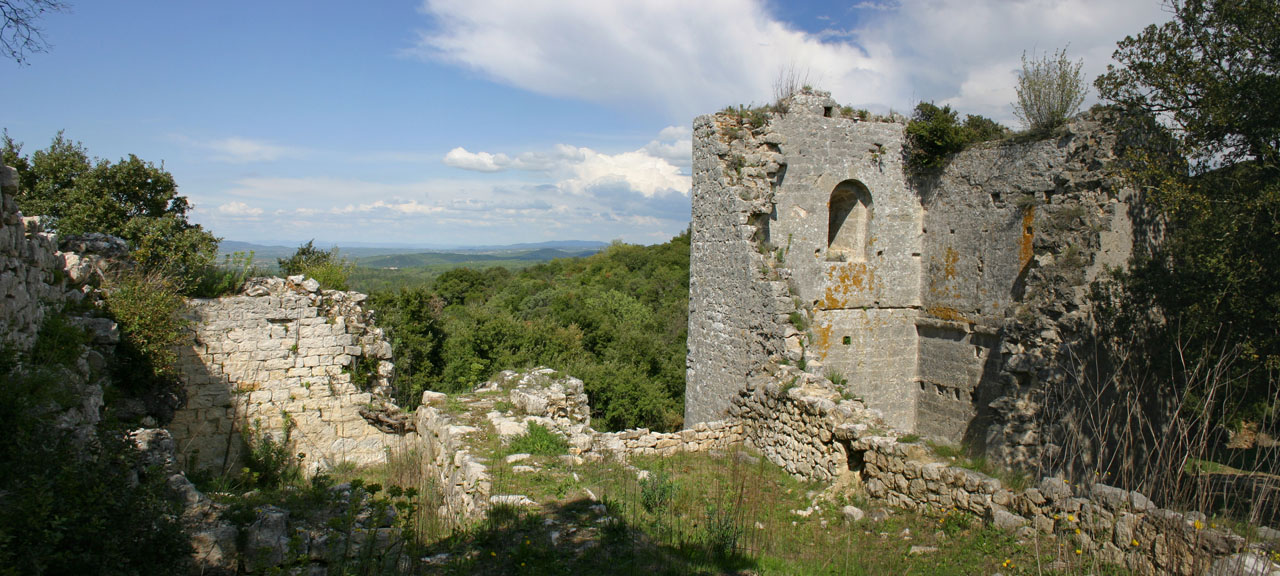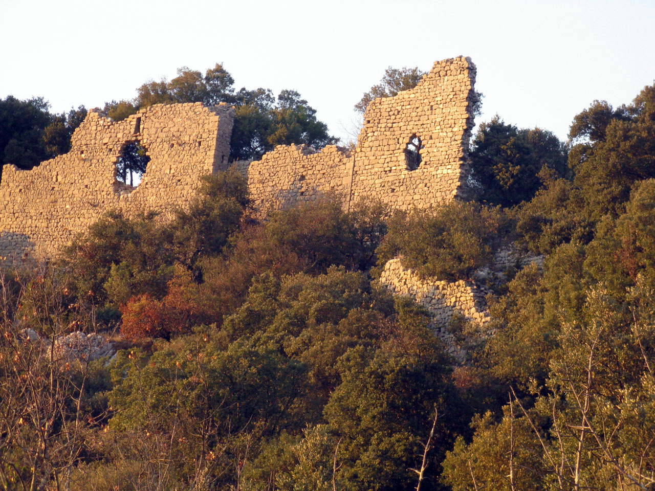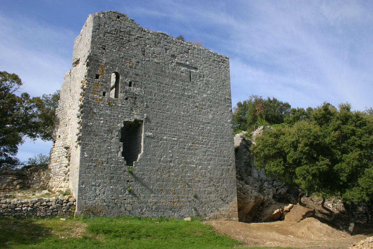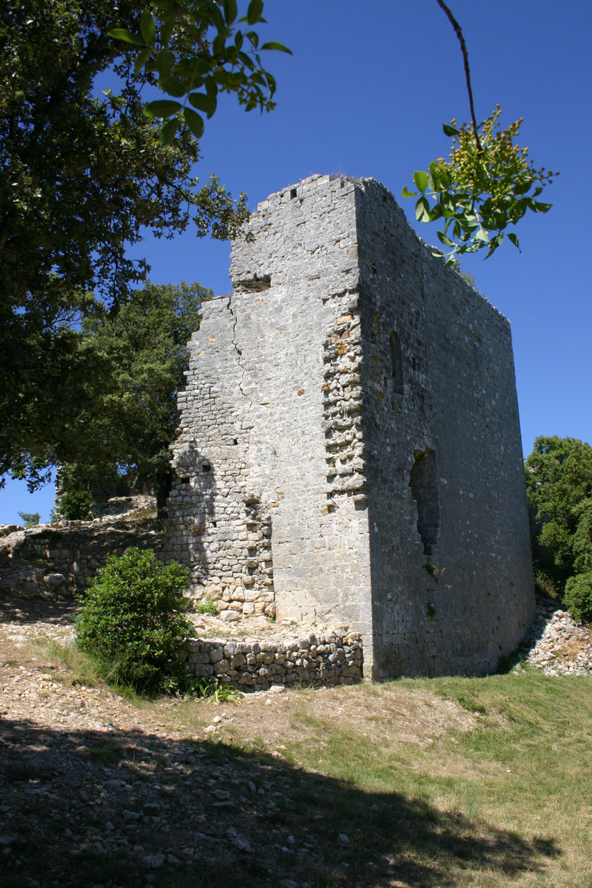 ⇑ Ce bâtiment est quasi aveugle sur trois de ses faces (sud, est et nord); le mur est, parallèle à l'arrivée du chemin Royal venant d'Uzès, comporte toutefois deux petites ouvertures semi circulaires surmontées de deux meurtrières verticales.