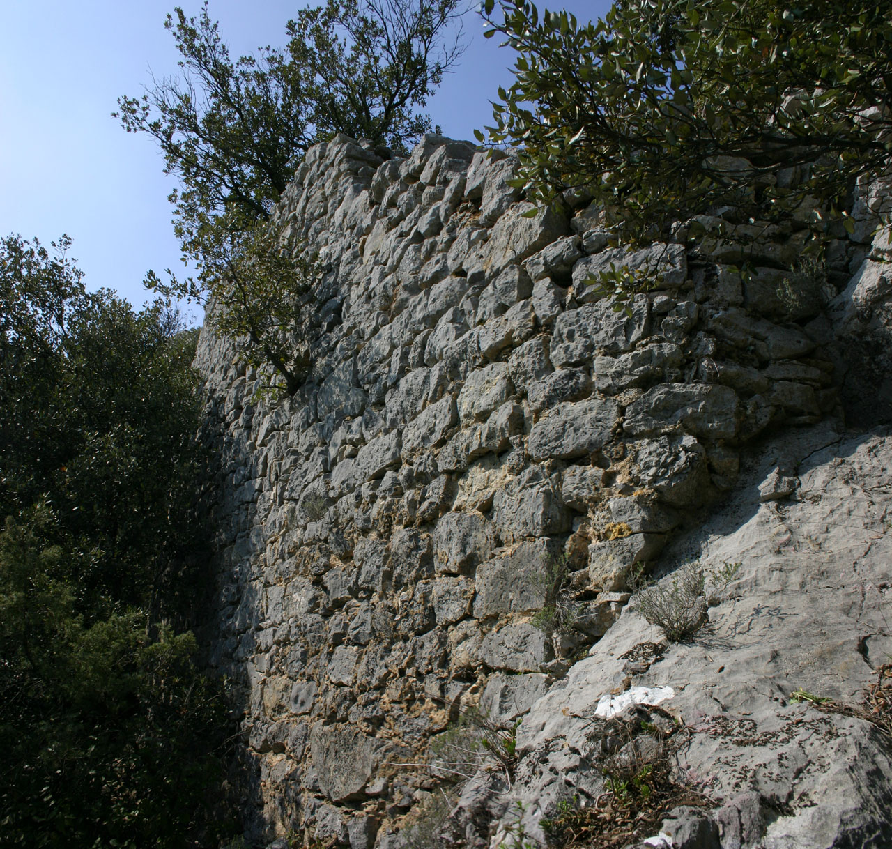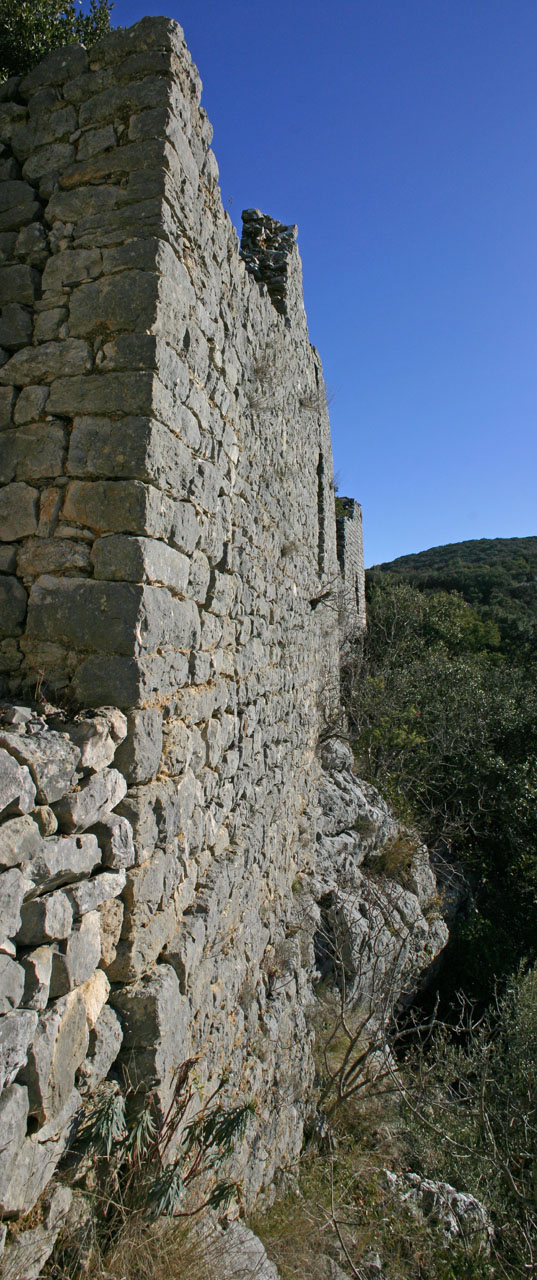 ⇑ Deux vues de la muraille posée sur l'extrême bord de la falaise ⇑