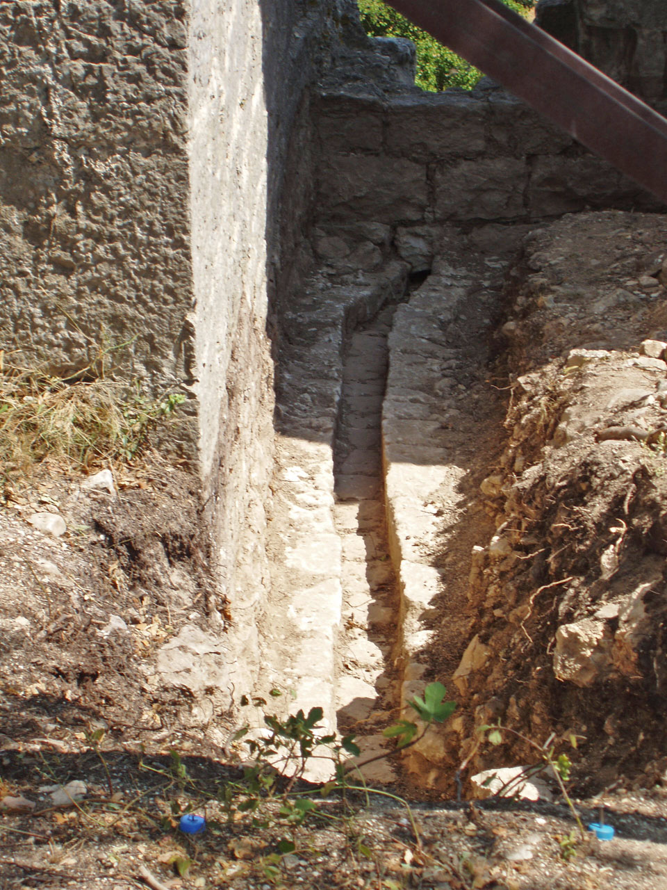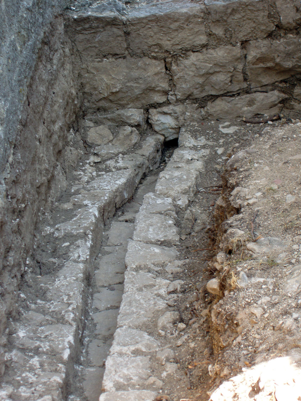 Pour finir, les fouilles de 2004 ont mis à jour, à l'intérieur de l'extension, un canal de récupération des eaux: