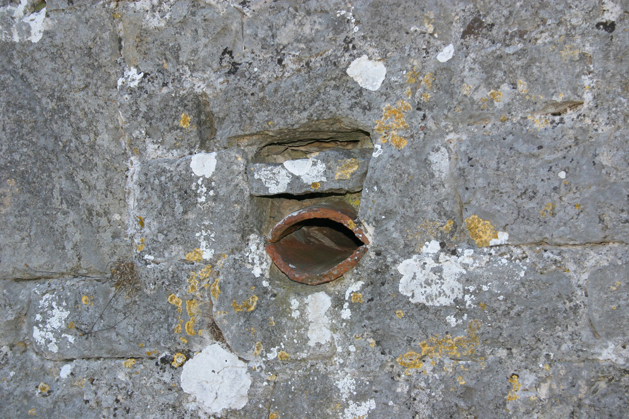 ⇑ La sortie des conduits des latrines au pieds de la tour ⇑