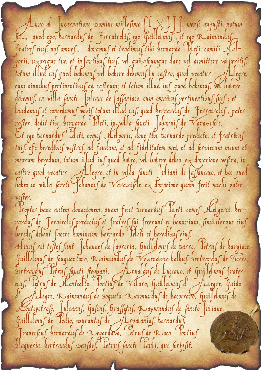 Ce sont souvent les archives de la maison de Bouquet qui nous complètent les informations parcellaires concernant la famille Allègre car elle détenait des parts dans la seigneurie de Bouquet toute proche.